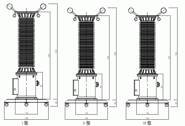 | 說明 | 1. 準確度為0.05級的變比實際誤差可以滿足0.02級要求; 2. 可以根據(jù)用戶的實際需求,在合理范圍內(nèi)增加相應變比; 3. 臥式運輸支架和四輪底座為可選配置 (表中的尺寸均不帶底座及均壓環(huán)) 。 | ||||||||