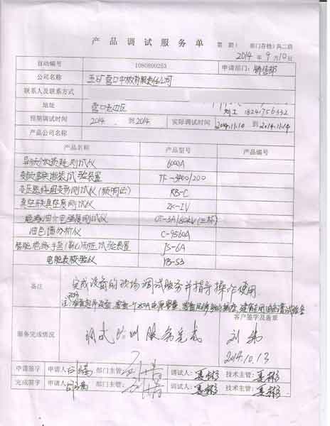 2014-11-10 五礦營口中板有限責(zé)任公司(遼寧)進行調(diào)試服務(wù),調(diào)試產(chǎn)品:CYTF-3400/200變頻串聯(lián)諧振試驗成套裝置