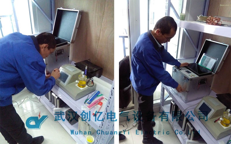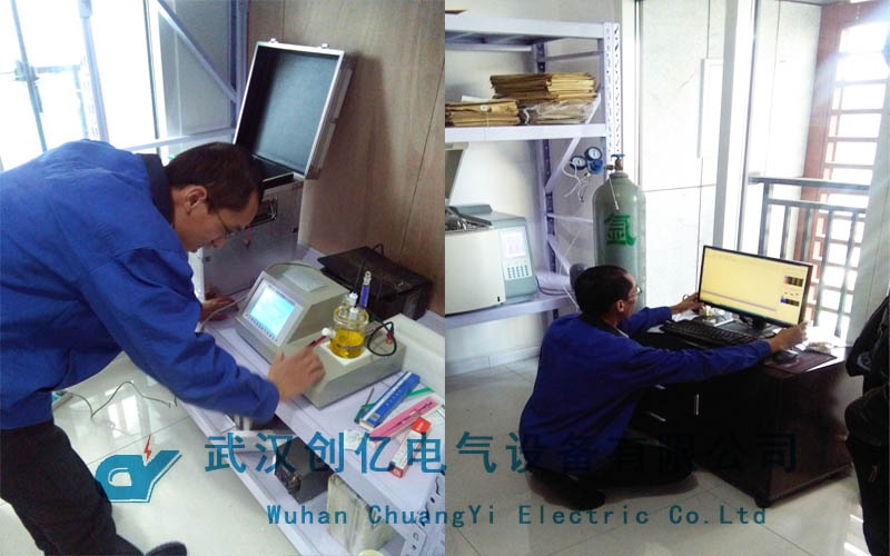 本次調(diào)試主要是以客戶的變壓器油作為被試品,首先是對CYOT-80按照國際模式進(jìn)行實驗。試驗過程中詳細(xì)講解了操作注意事項。在CYW-106的試驗過程中,首先要對電解池及電極部分組裝,然后用50ul注射器慢慢注入純水直到電解池油深褐色變?yōu)闇\黃。然后是電解液達(dá)到平衡點,再用1000ul注射器注入1ml的變壓器油樣后開始測定。該操作過程需要耐心和仔細(xì),因此在試驗過程中,技術(shù)人員詳細(xì)操作,并指導(dǎo)客戶進(jìn)行試驗。