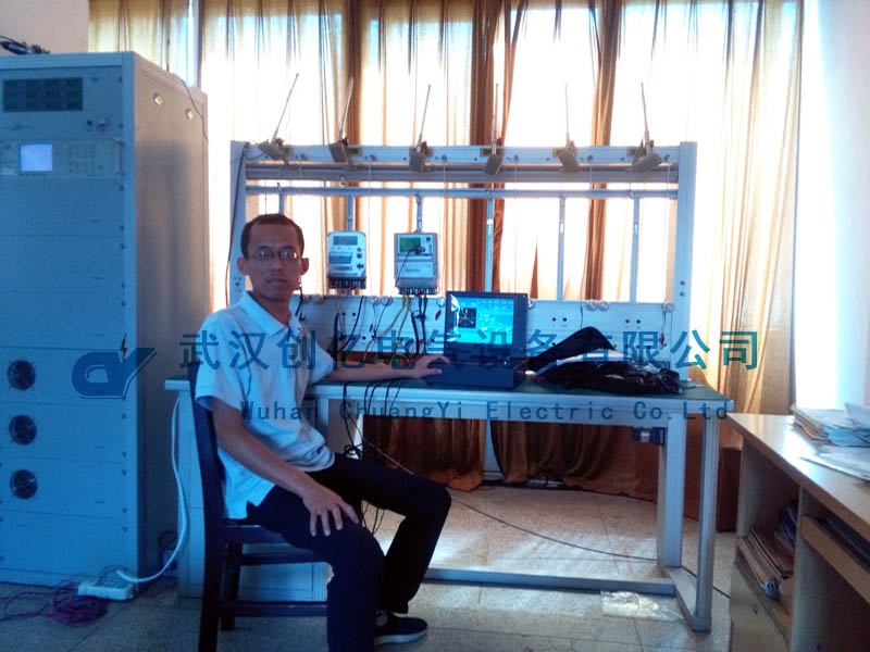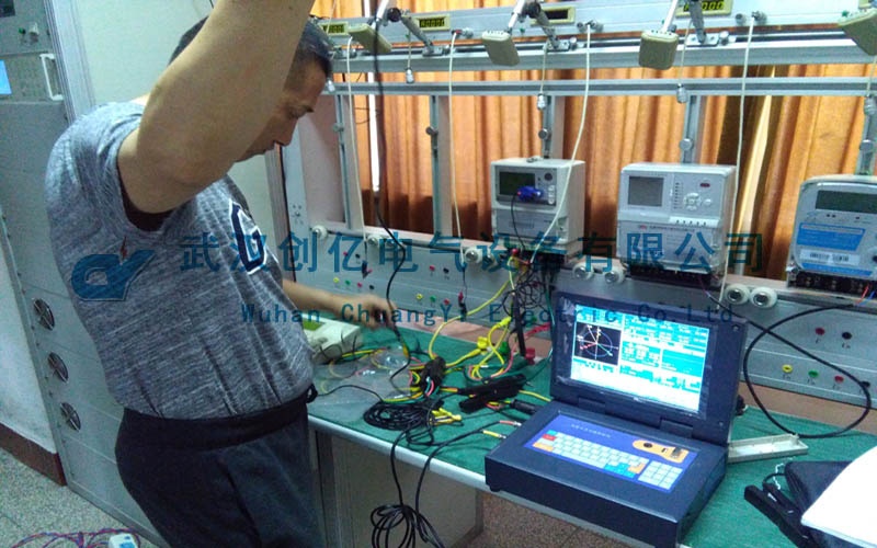現(xiàn)場采用客戶的三相三線電能表為被試品向客戶進行操作演示,并培訓客戶使用我們的產(chǎn)品。我司技術(shù)人員先和電站人員前往實驗室進行試驗。首先使用電能表校驗臺模擬電能表的負荷,指導客戶動手操作,將CYYM-3B的電壓電流線接到三相三線的電能表上。然后進行模擬實驗。