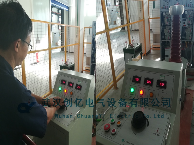 隨后,用其購買的CYYD-15/150工頻耐壓試驗裝置對現(xiàn)場的10kV開關(guān)做耐壓試驗??蛻舭凑諛?biāo)準(zhǔn)升壓至42kV一分鐘無閃絡(luò),試驗通過!