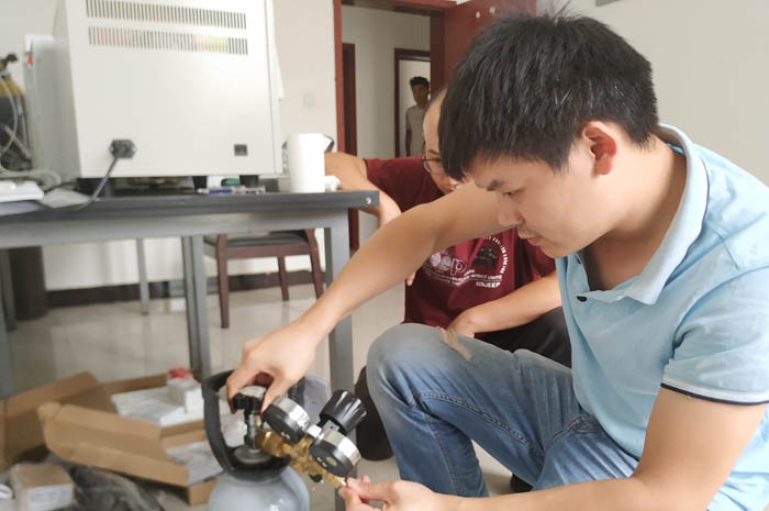 在現(xiàn)場對試驗設(shè)備清點、組裝,之后在客戶的組織安排下開始培訓。培訓主要圍繞試驗設(shè)備開機前的準備工作展開,指導客戶如何做堿液配置、氣路連接、檢漏等內(nèi)容。
