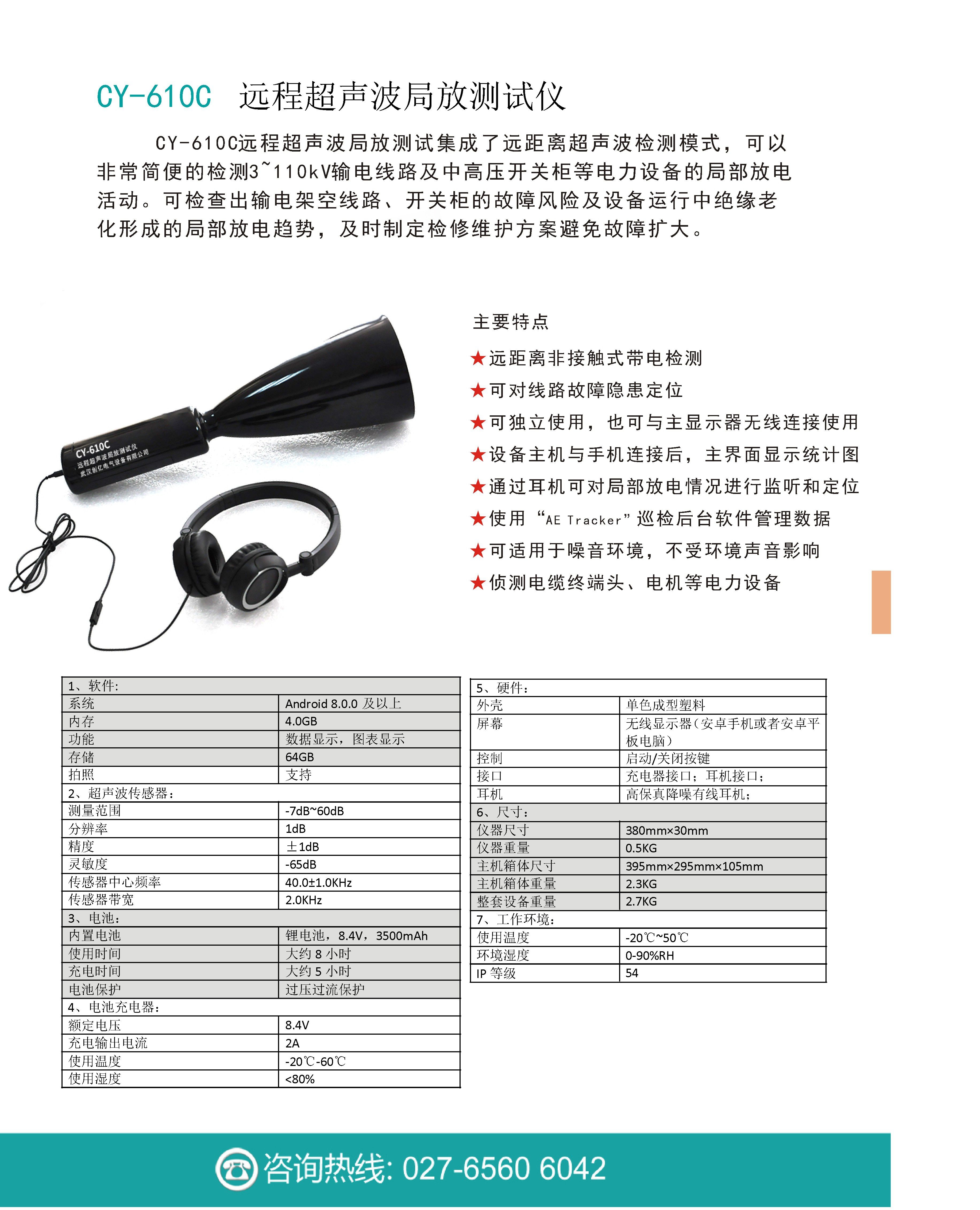 診斷和檢測局部放電是一種非常有效的中壓和高壓配電網(wǎng)絡(luò)狀態(tài)監(jiān)測技術(shù),可以涵蓋開關(guān)、電纜、架空線、變壓器、GIS。局放是中壓和高壓設(shè)備和電纜絕緣故障的常見原因之一。局部放電檢測可以檢出有害的缺陷,從而幫助確認(rèn)未來的潛在的故障。在長期運行中,高壓開關(guān)柜受電、熱、化學(xué)及異常狀況影響形成絕緣劣化,易導(dǎo)致電氣絕緣強度降低甚至發(fā)生絕緣事故,造成非常大的經(jīng)濟損失和供電損失。實踐表明:局部放電是導(dǎo)致運行設(shè)備絕緣劣化,發(fā)生絕緣故障的最主要原因。CY-610C遠程超聲波局放測試儀采用超聲頻譜探測頭(傳感器)采集超聲波信號通過分析信號音來診斷配電線路事故隱患的帶電檢測診斷裝置。此裝置在帶電的情況下判斷有故障隱患的線路位置和故障類型,在采集超聲波異常信號后,傳輸?shù)街鳈C,轉(zhuǎn)換為可聽聲音信號及波形,最后通過分析軟件準(zhǔn)確的診斷出事故隱患類型及不良等級,可以幫助巡檢人員準(zhǔn)確發(fā)現(xiàn)線路故障隱患預(yù)防大事故的發(fā)生,避免了不必要的停電,縮小了停電范圍,提高了巡檢人員的工作效率和電力線路的健康指數(shù)。我公司目前已經(jīng)在全國范圍內(nèi)多個省市進行了使用,效果良好。