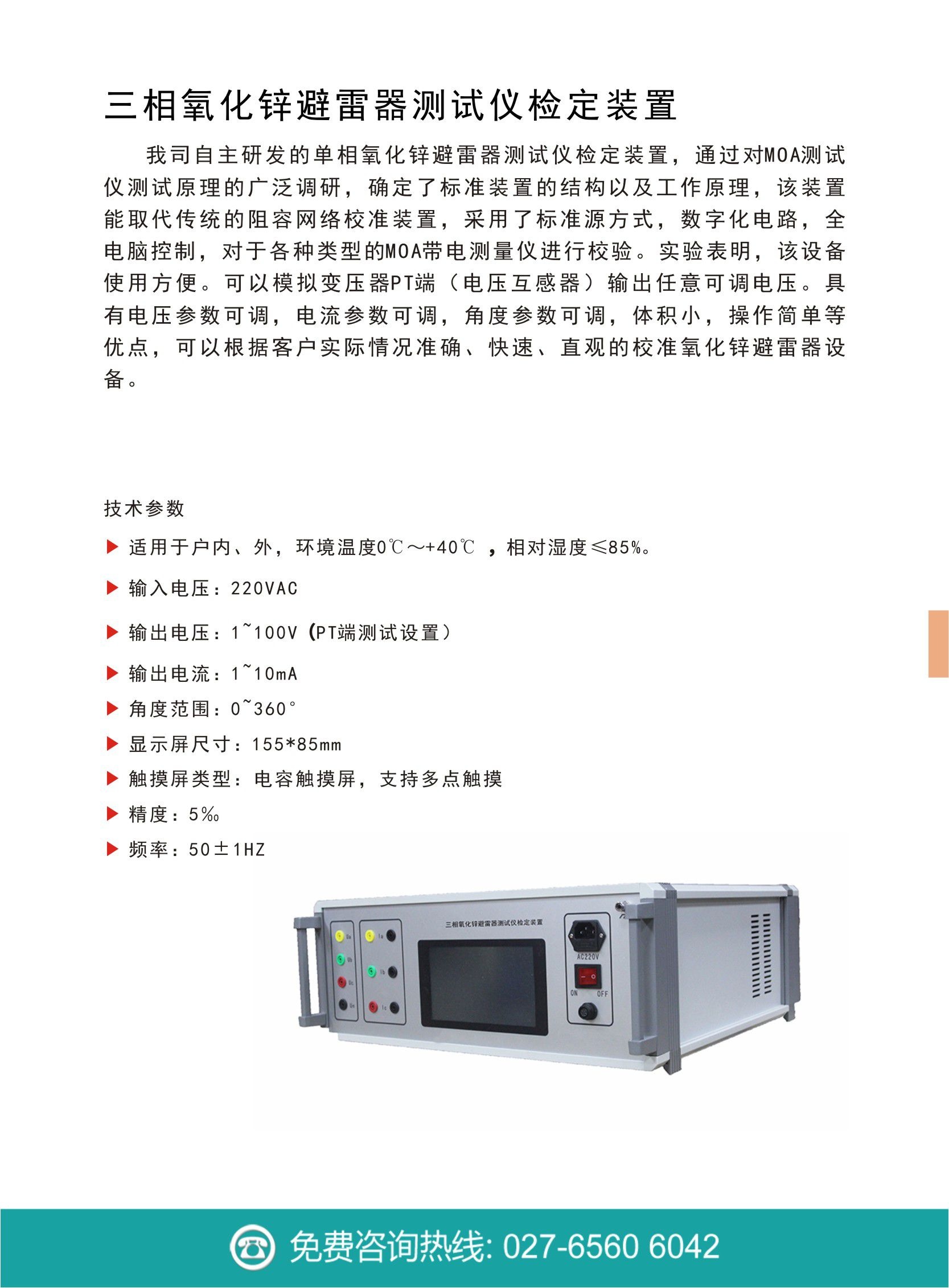 本裝置可模擬輸出氧化鋅避雷器運行現(xiàn)場所需要的交流電壓和漏電流信號,主要用來檢定單相或三相(氧化鋅避雷器測試儀)在線測量時的準確性和穩(wěn)定性,也可以在其他場合作為三相交流信號數(shù)控源使用。