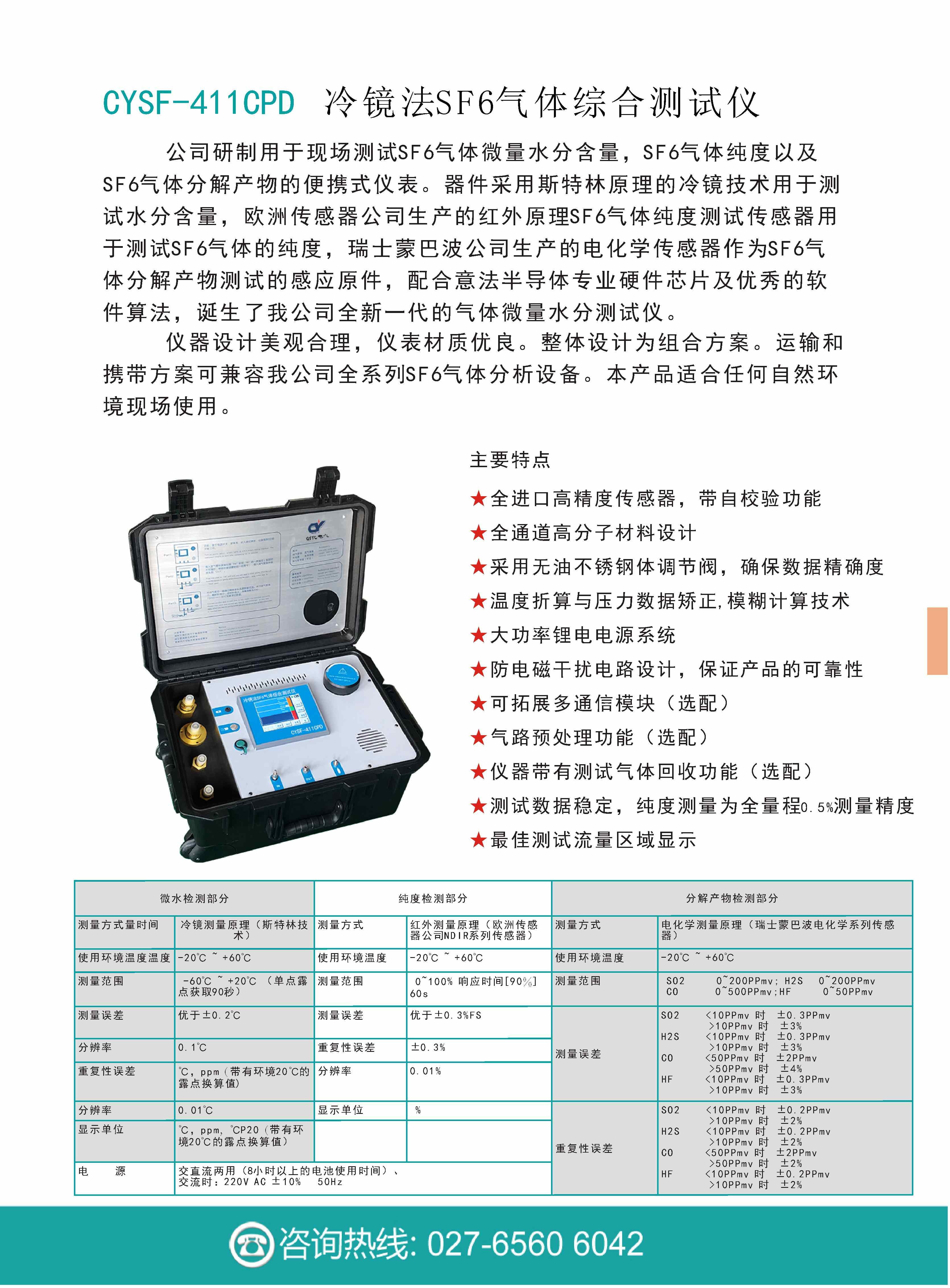 冷鏡法SF6氣體綜合測試儀是我公司研制用于現(xiàn)場測試SF6氣體微量水分含量,SF6氣體純度以及SF6氣體分解產(chǎn)物的便攜式儀表。采用斯特林原理的冷鏡技術(shù)用于測試水分含量,歐洲傳感器公司生產(chǎn)的紅外原理SF6氣體純度測試傳感器用于測試SF6氣體的純度,瑞士蒙巴波公司生產(chǎn)的電化學(xué)傳感器作為SF6氣體分解產(chǎn)物測試的感應(yīng)原件,配合意法半導(dǎo)體專業(yè)硬件芯片及軟件算法,誕生了我公司的冷鏡法SF6氣體綜合測試儀。