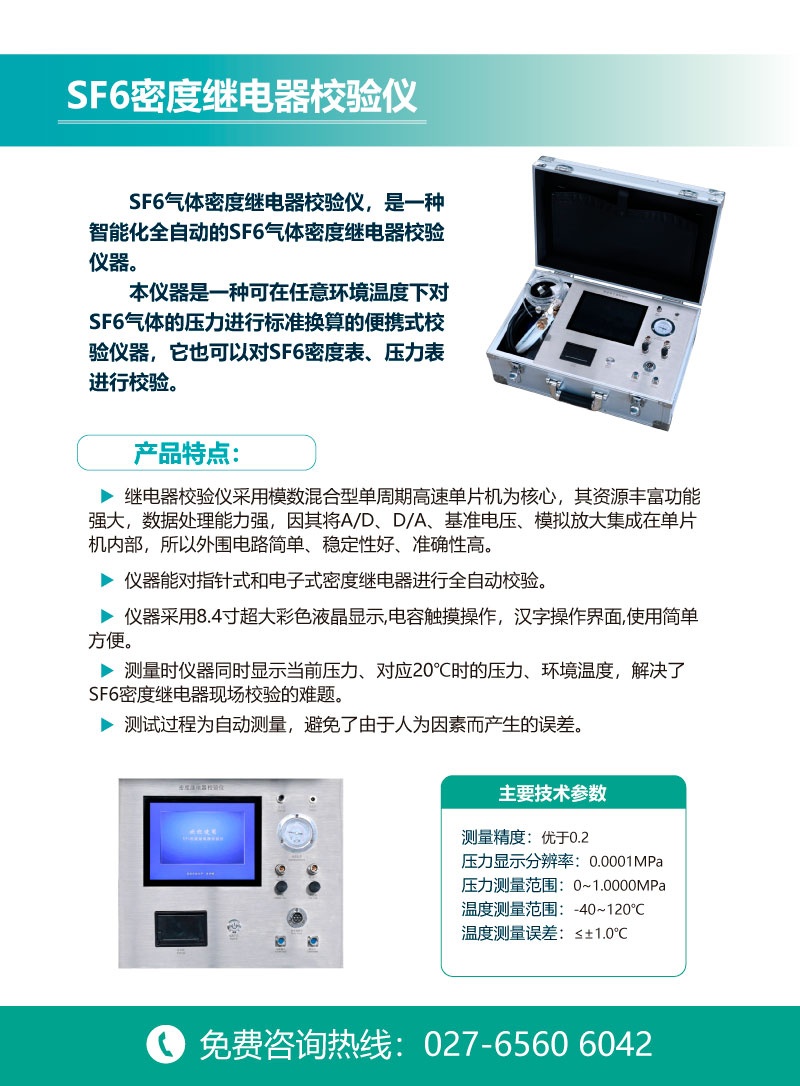 本儀器是一種可在任意環(huán)境溫度下對SF6氣體的壓力進行標準換算的便攜式校驗儀器,它也可以對SF6密度表、壓力表進行校驗。